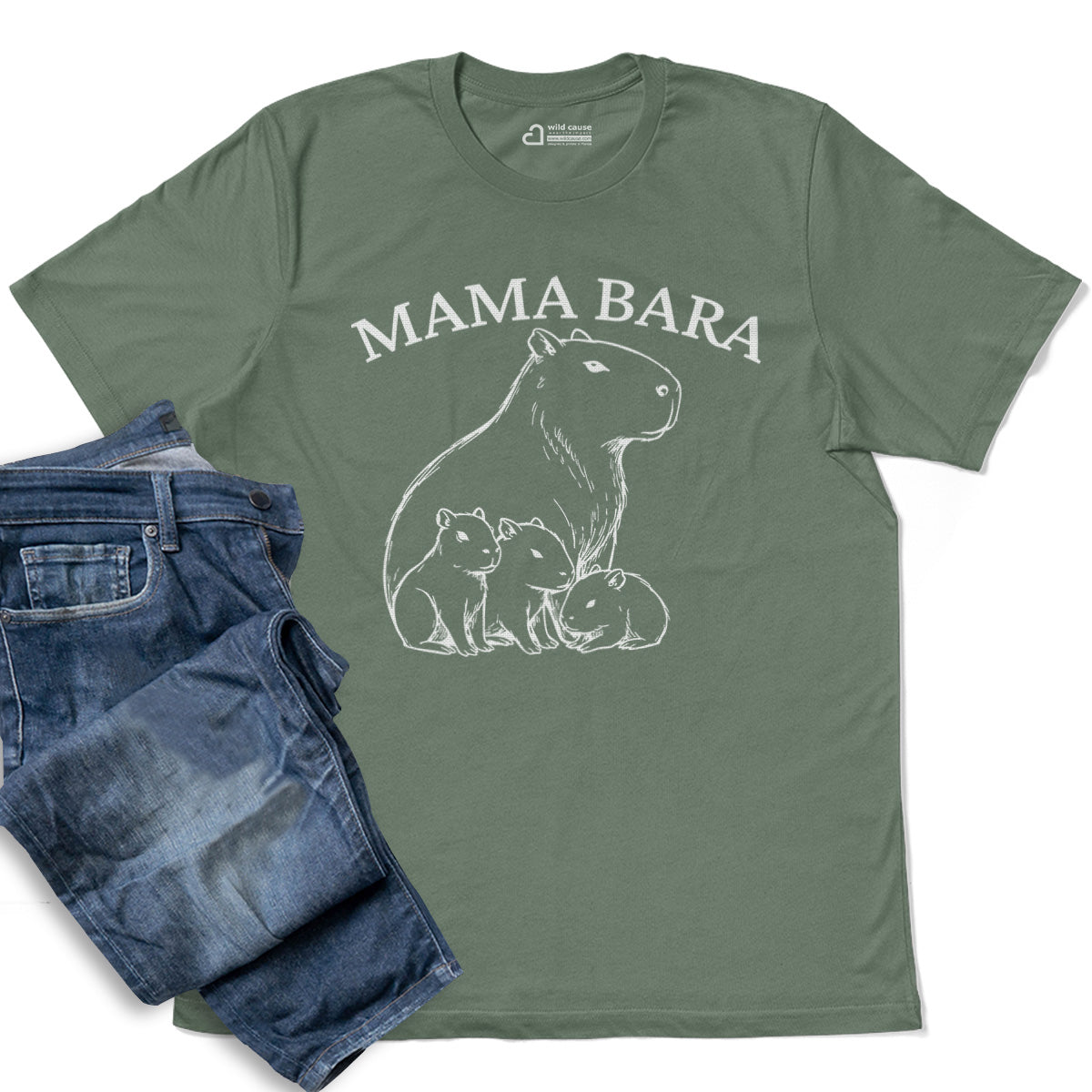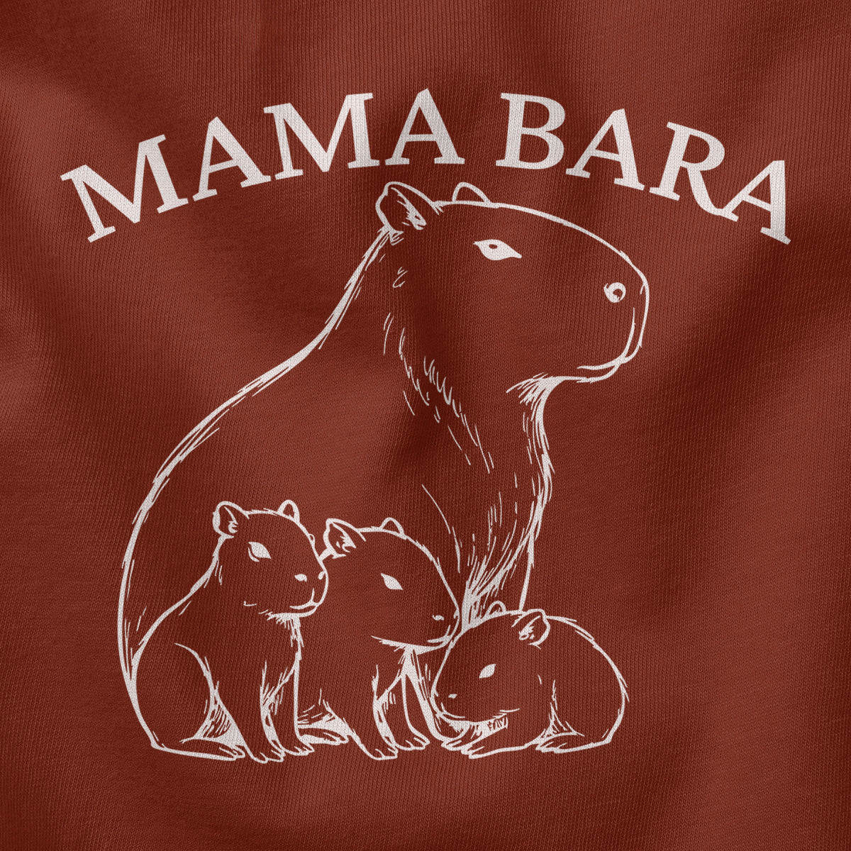 Mama Bara Cute Capybara With Cubs Adult Cotton Tee T-Shirt