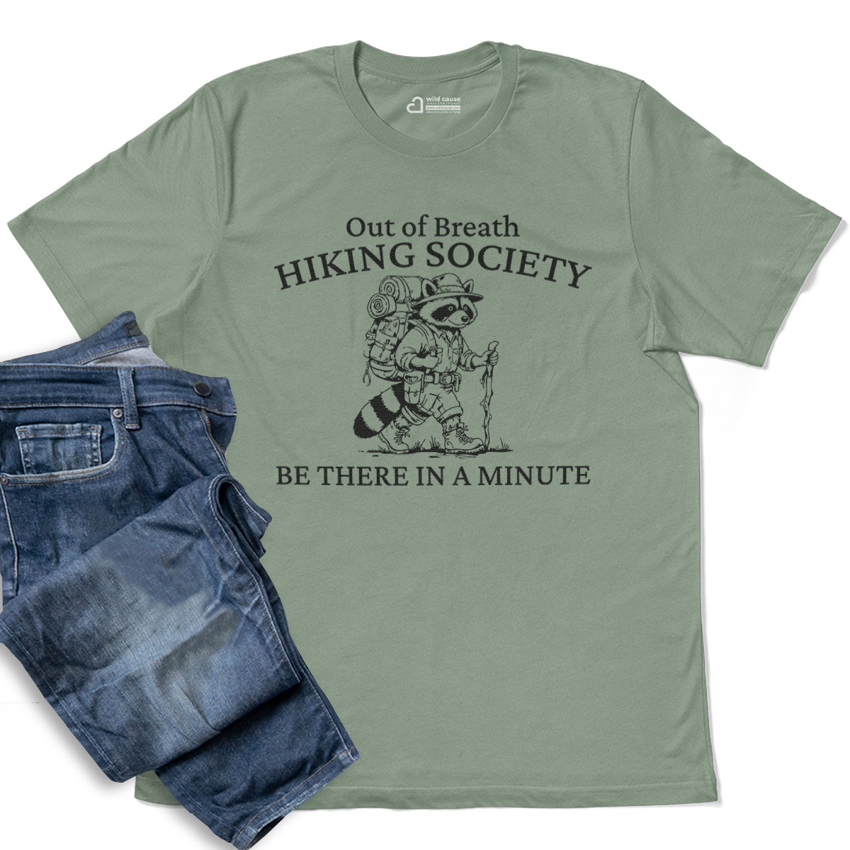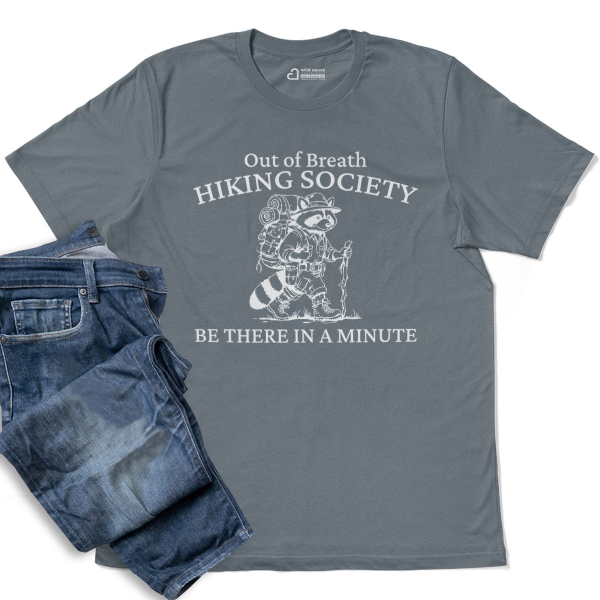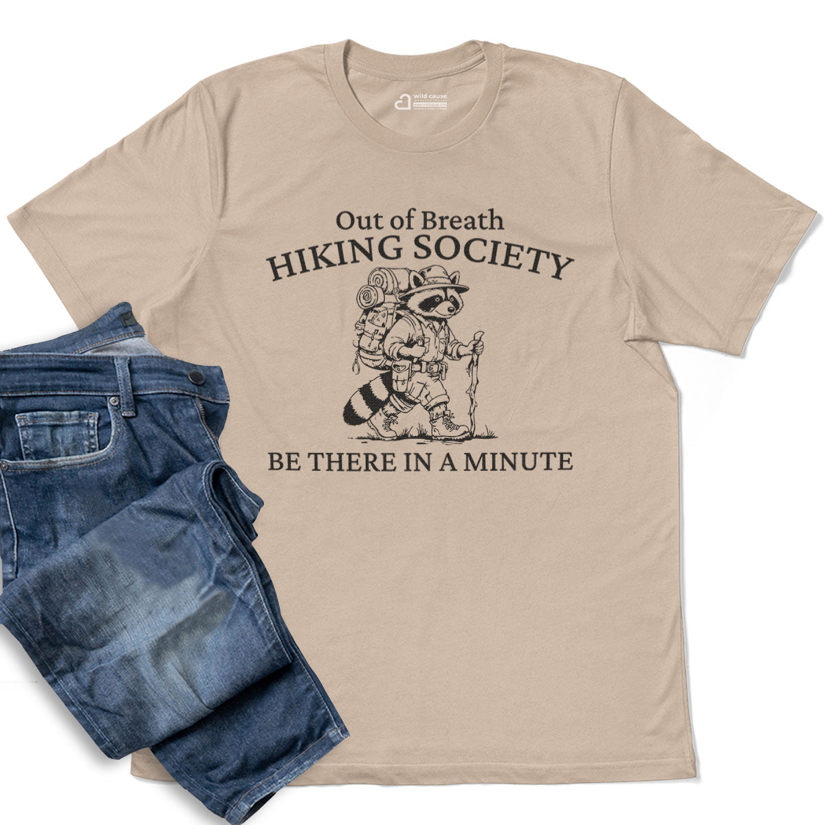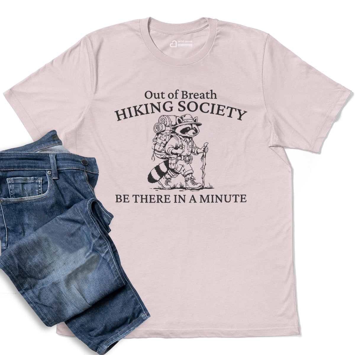 Out Of Breath Raccoon Hiking With Gear Adult Cotton Tee T-Shirt