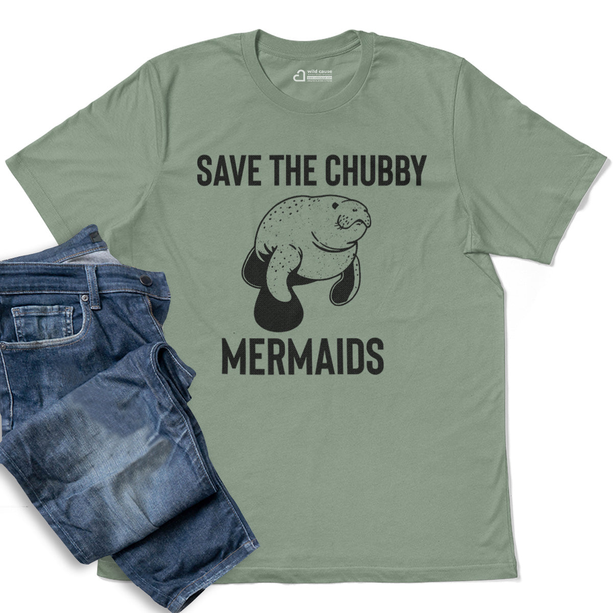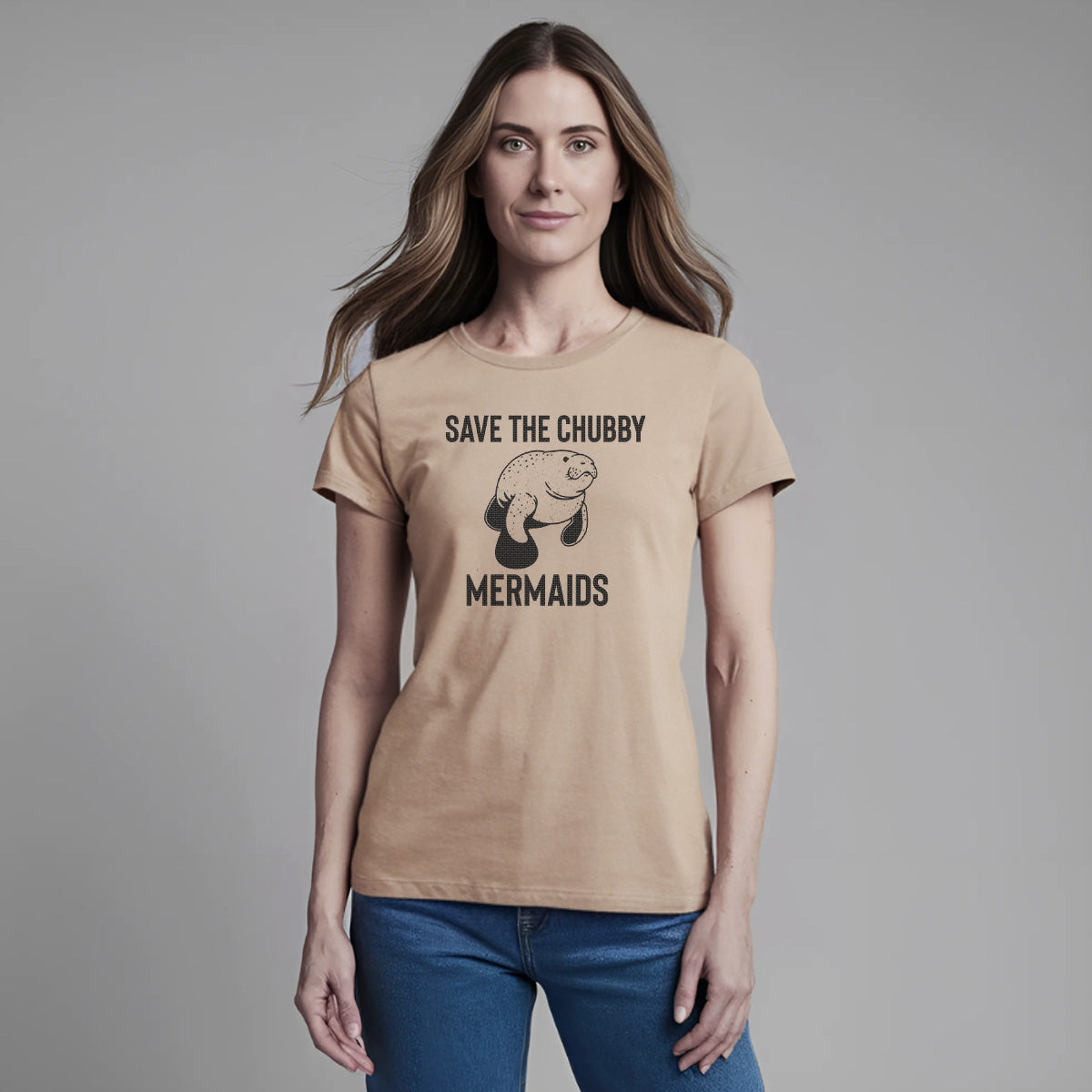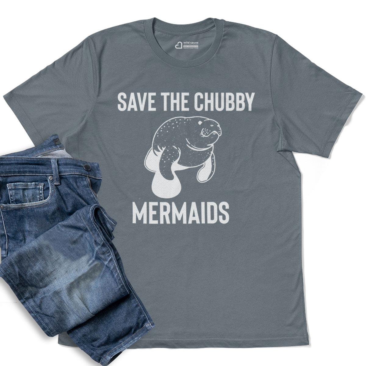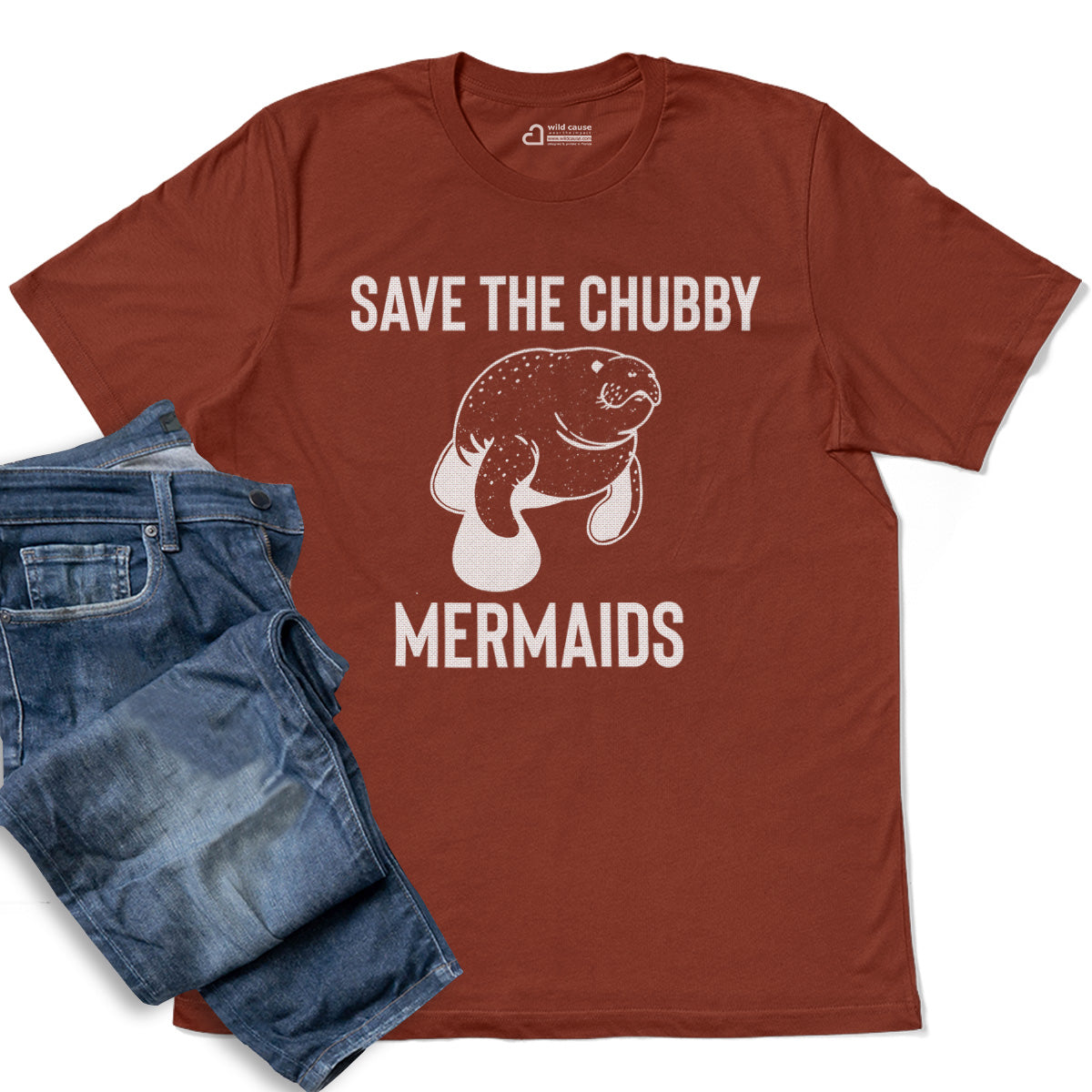 Save The Chubby Mermaids Sea Manatee Adult Cotton Tee T-Shirt