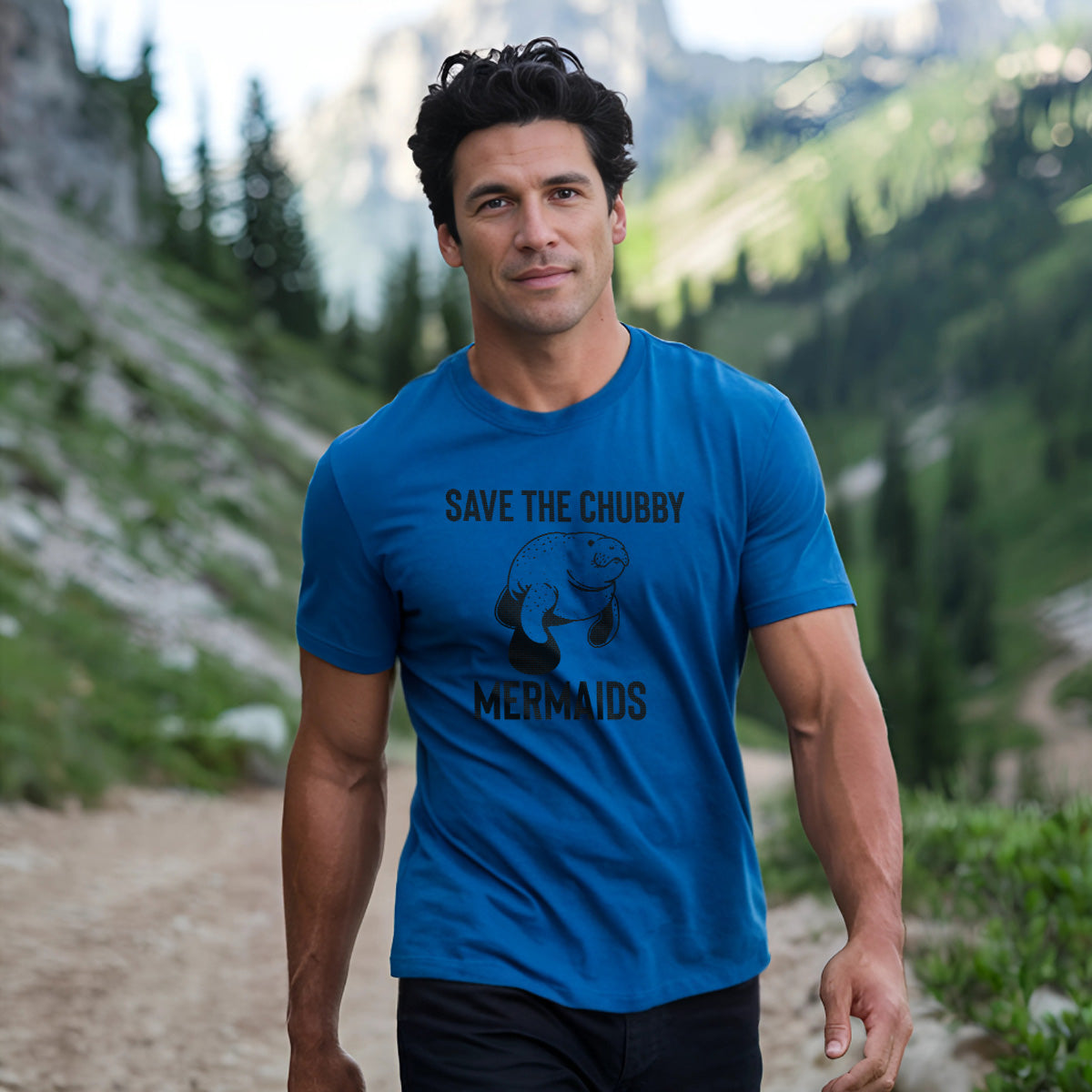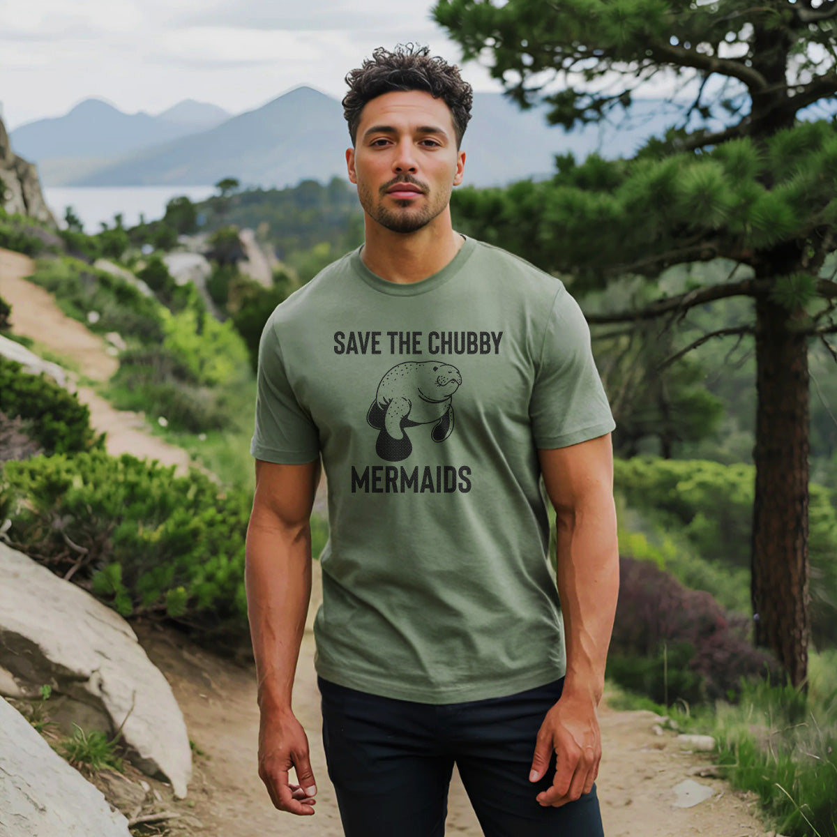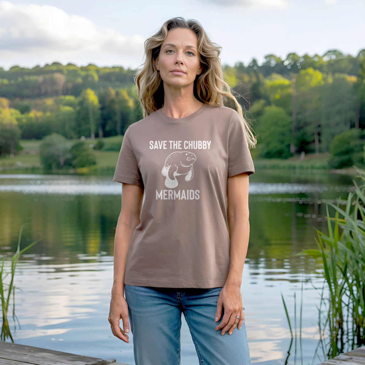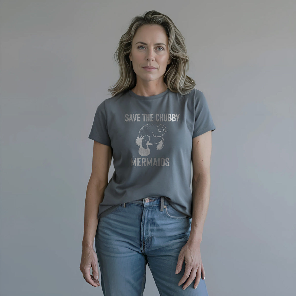 Save The Chubby Mermaids Sea Manatee Adult Cotton Tee T-Shirt