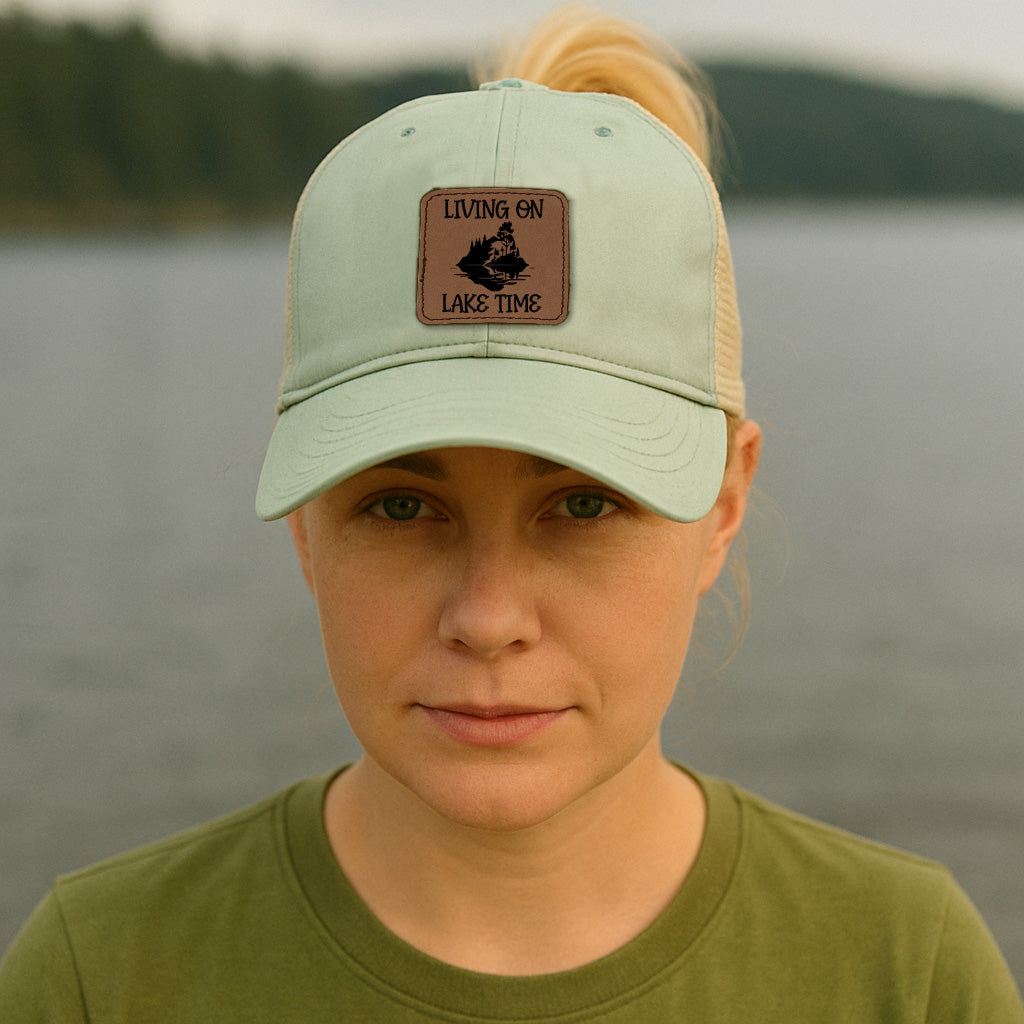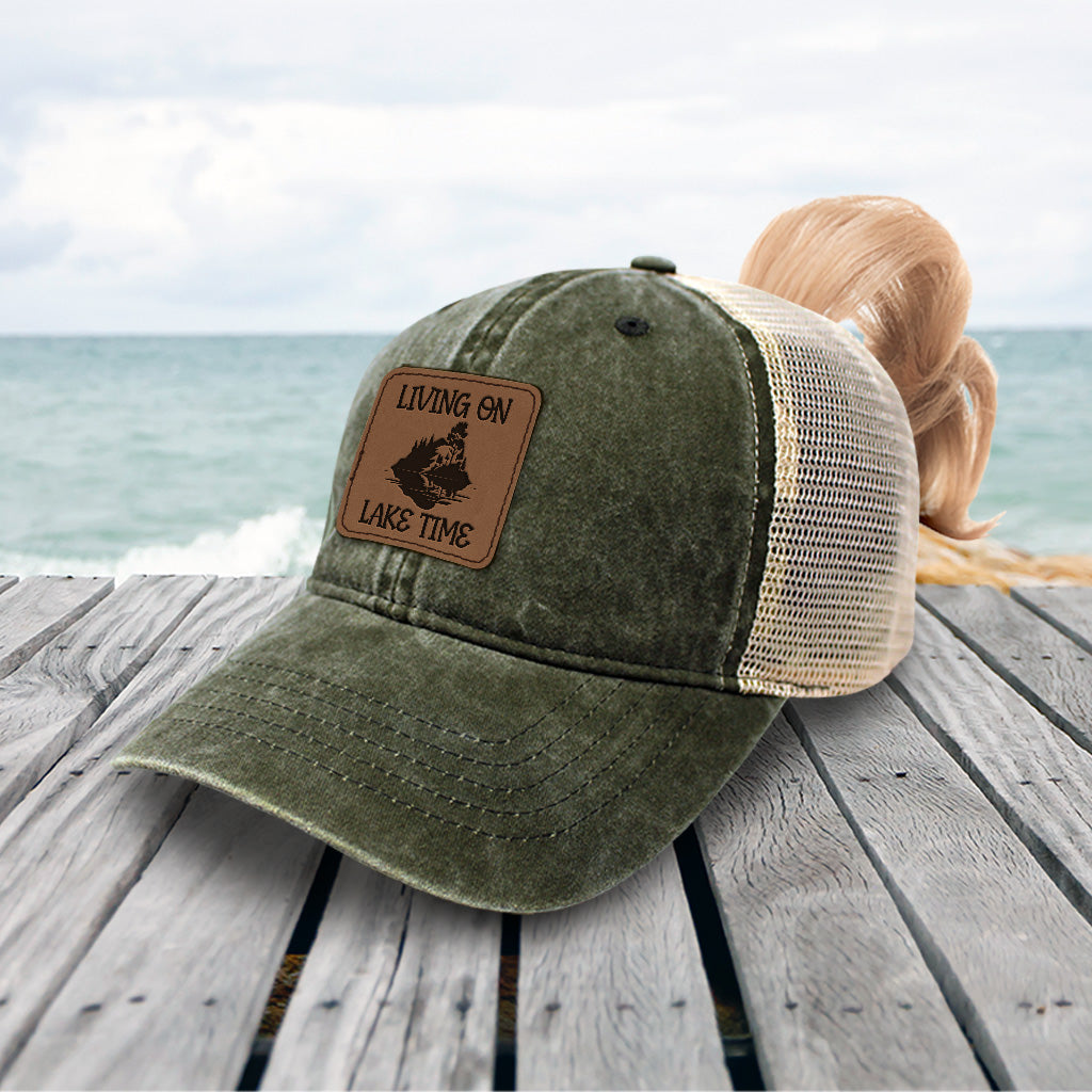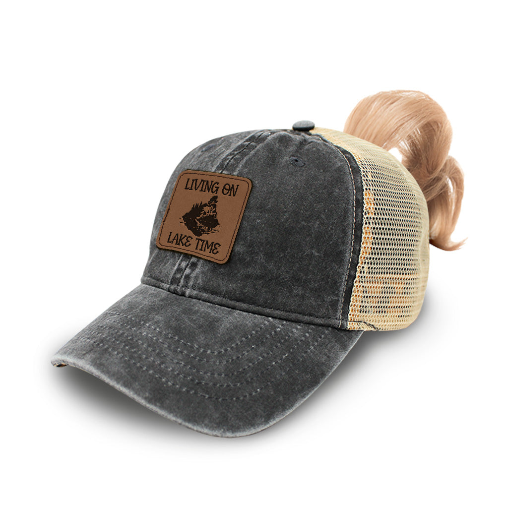 Slow Living On The Lake Symbolic Art Ponytail Cap Hat